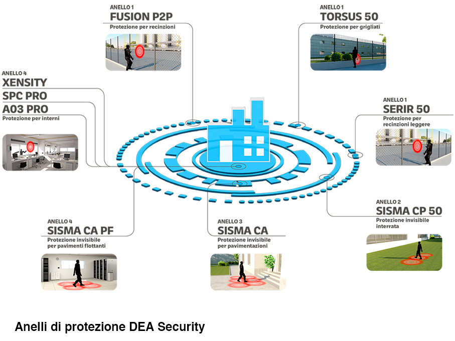 DEA Security è un’azienda italiana che progetta e produce una completa gamma di sistemi di rivelazione perimetrale antintrusione. Nati da una continua e intensa attività di ricerca e sviluppo, e coperti da brevetti internazionali, questi sistemi sono oggi impiegati nella protezione di perimetri di ogni dimensione in ambito militare, industriale, commerciale e residenziale.